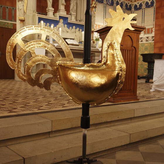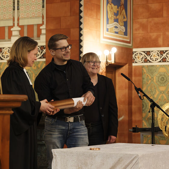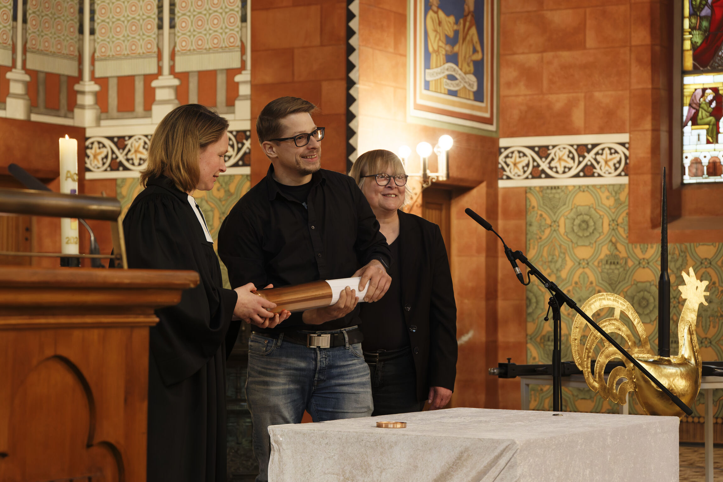 In einer Andacht am 04.04.25 haben wir die Bekrönung unserer St.-Jakobi-Kirche darauf vorbereitet, dass sie wieder auf die Kirchturmspitze gebracht werden kann. Die restaurierten Teile der Bekrönung wie der Wetterhahn, das Kreuz, der Blumenkranz und die goldene Kugel wurden den Besuchern präsentiert. Ein ganz besonderes Ereignis war die Befüllung der neuen Zeitkapsel bzw. Dokumentenrolle. In der Andacht haben wir vorgestellt, was wir an Zeitzeugnissen in diese Zeitkapsel hineingelegt haben. Anschließend wurde die Zeitkapsel verschlossen.