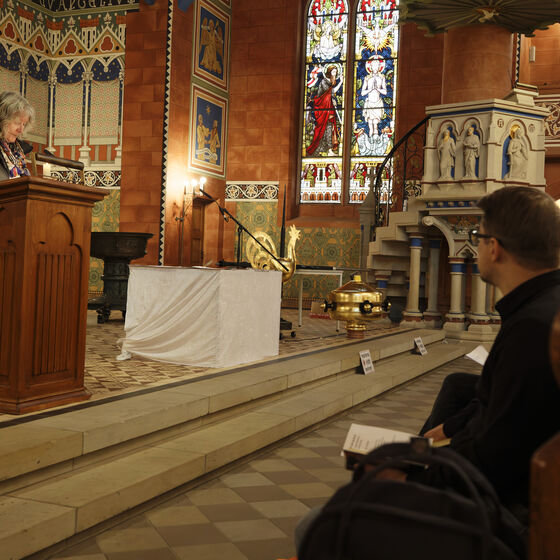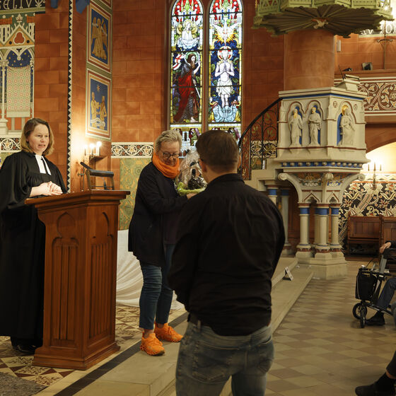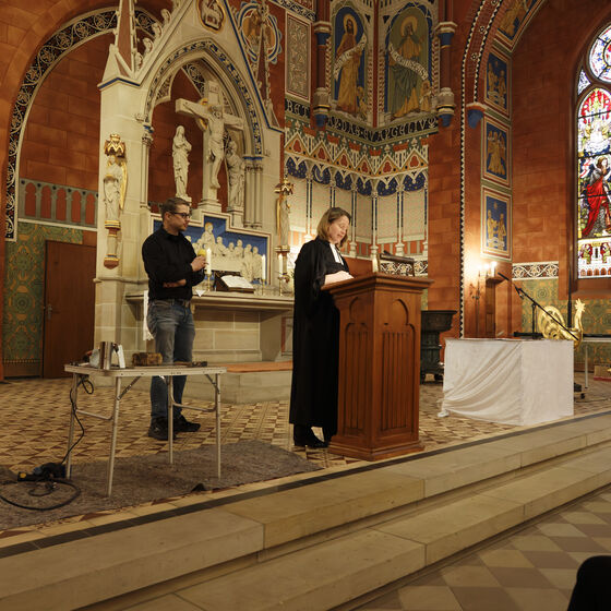 In der Andacht standen außerdem der Dank für den Einsatz des Restaurators Herrn Zeyher und die Bitte für das unfallfreie Aufbringen sowie für die Stadt Peine und die Kirche im Mittelpunkt.