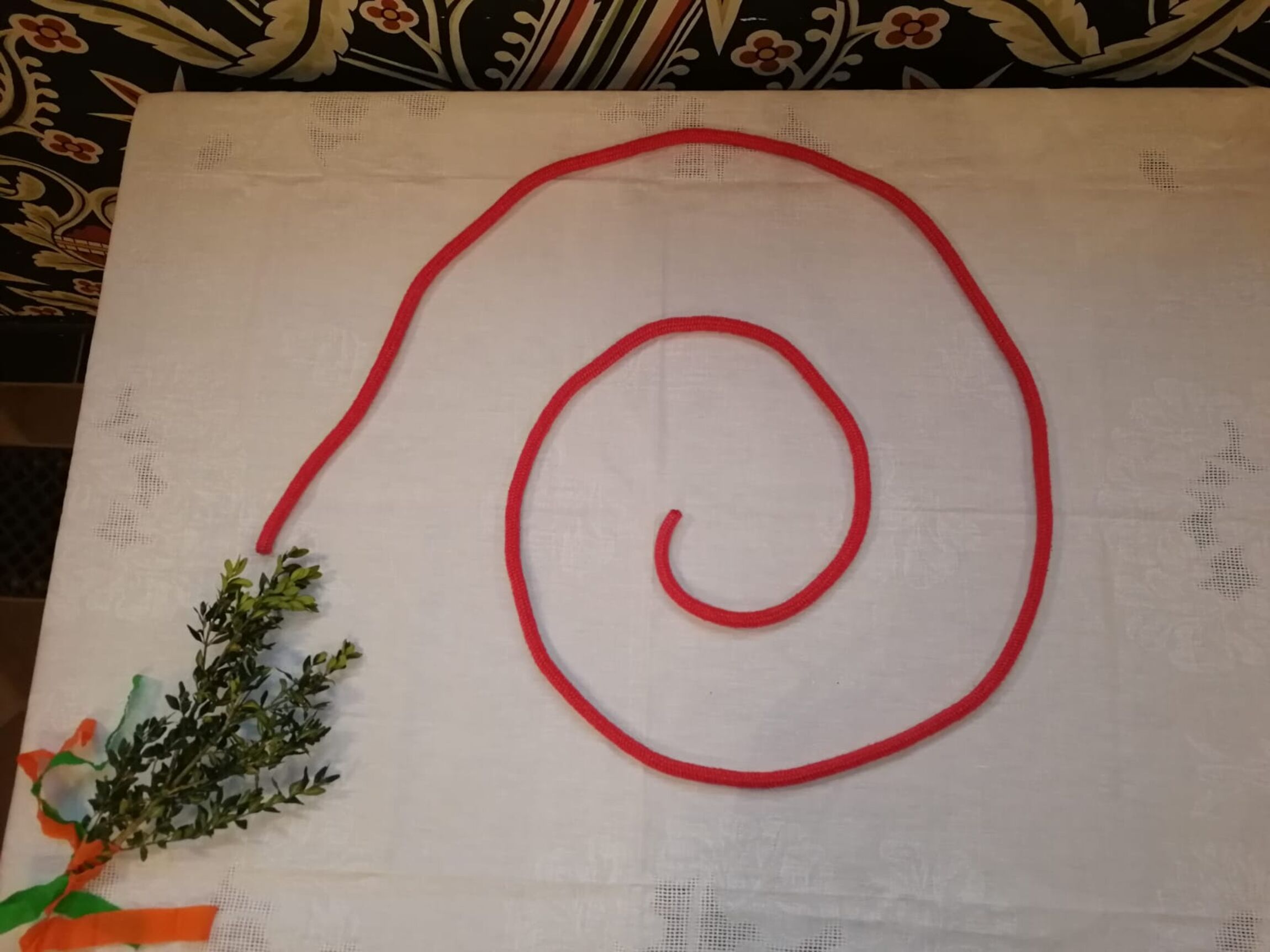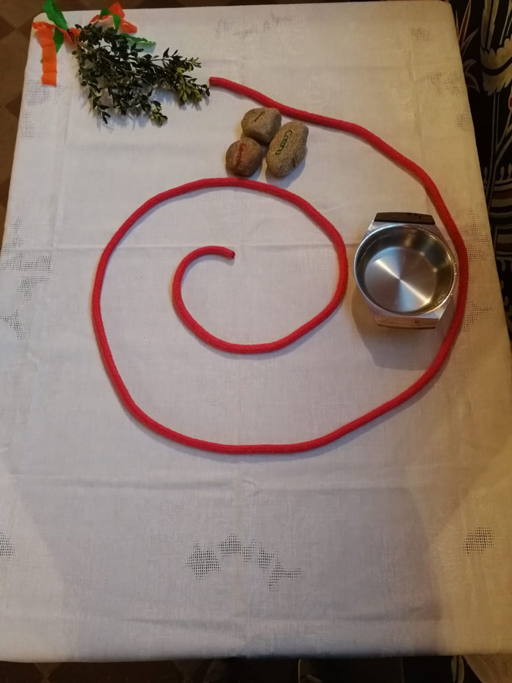 Tisch: Stelle Brötchen und Traubensaft in die Spirale als nächste Station nach der Wasserschale.