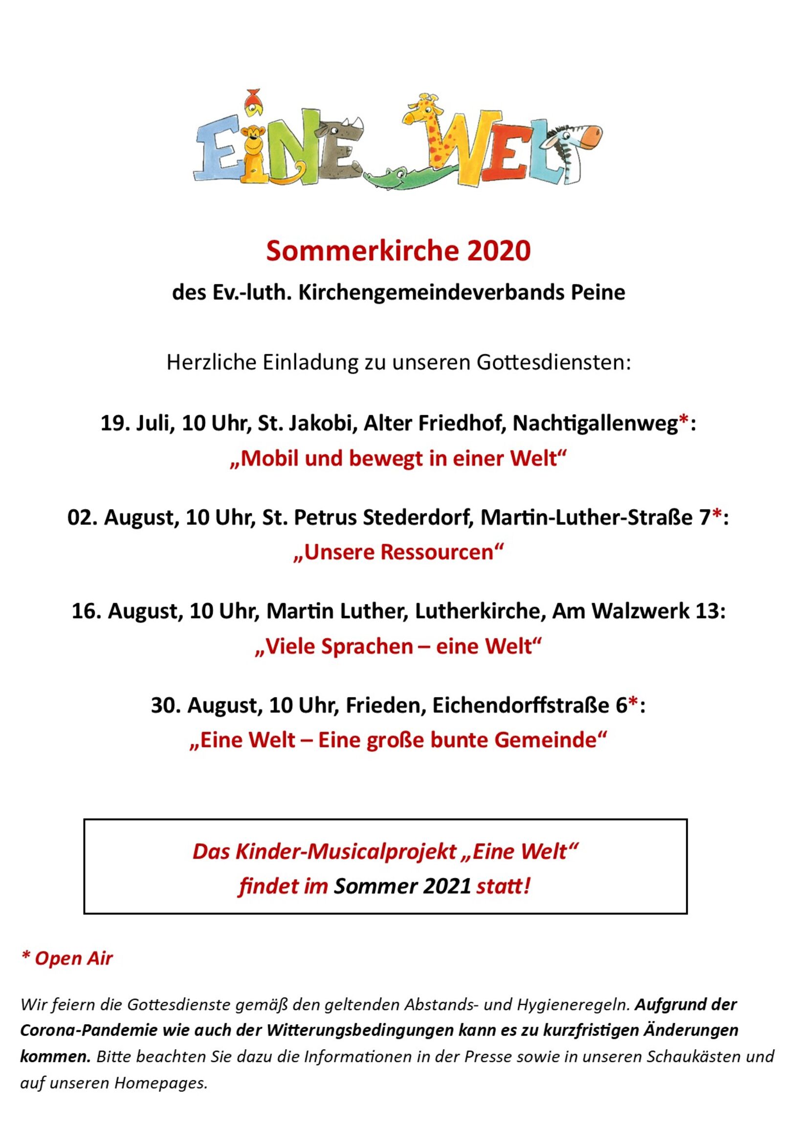 Unsere diesjährige Sommerkirche haben wir unter das Thema „Eine Welt“ gestellt. Es soll gehen um Vielfalt, Mobilität, Ressourcen, Integration, Sprachen und vieles mehr.