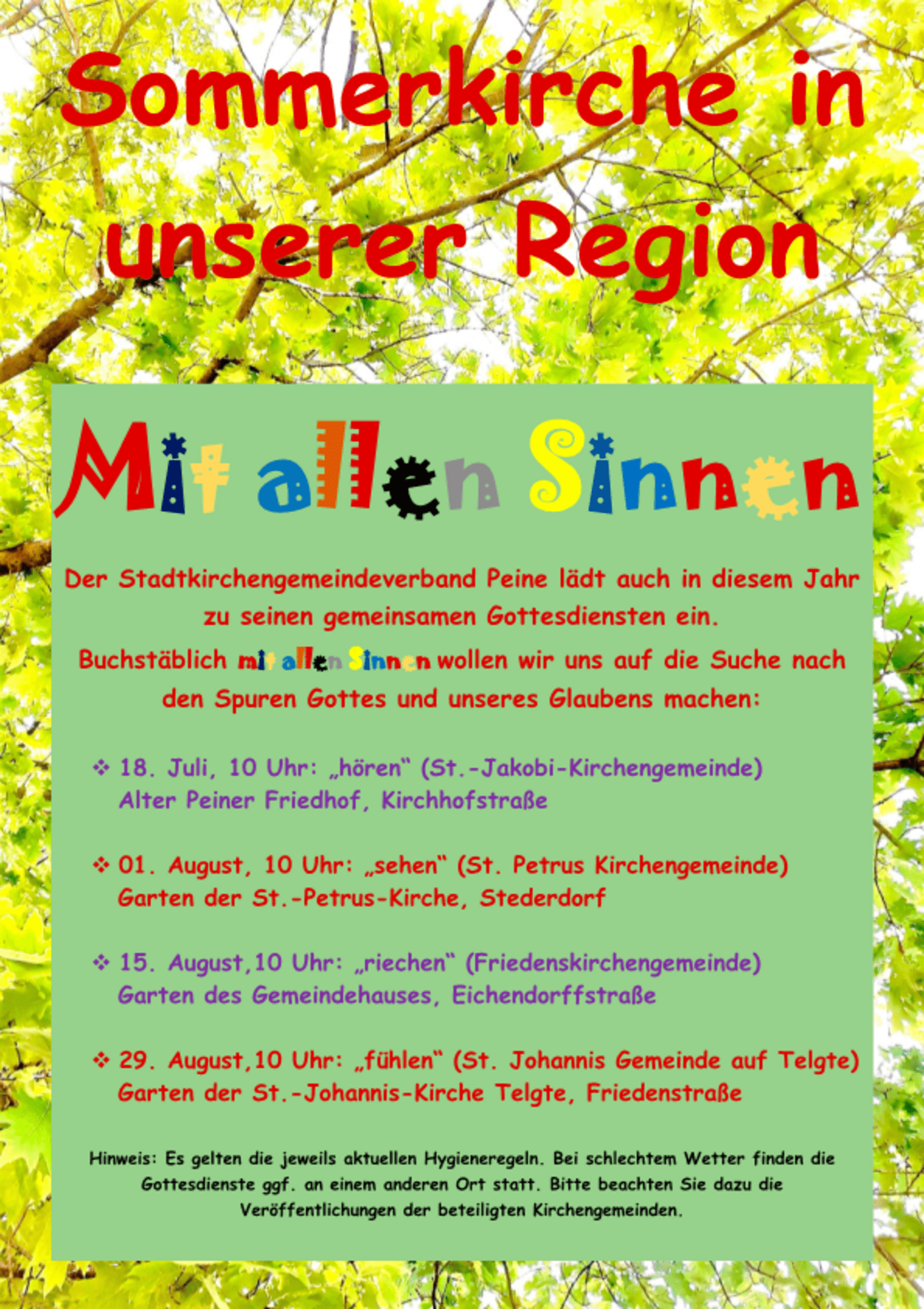 Bei schlechtem Wetter feiern wir den Gottesdienst am 18.07. in der St.-Jakobi-Kirche.