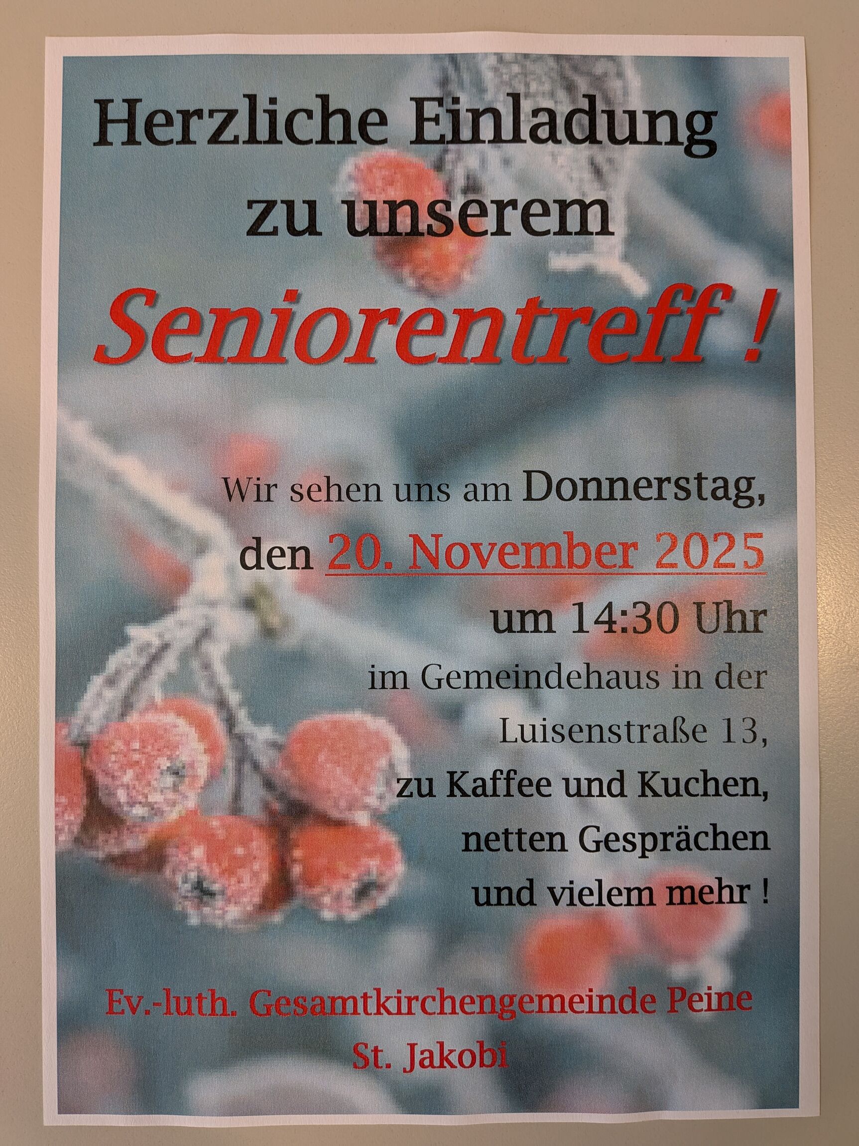 Wer am Seniorentreff teilnehmen möchte, ist herzlich willkommen!